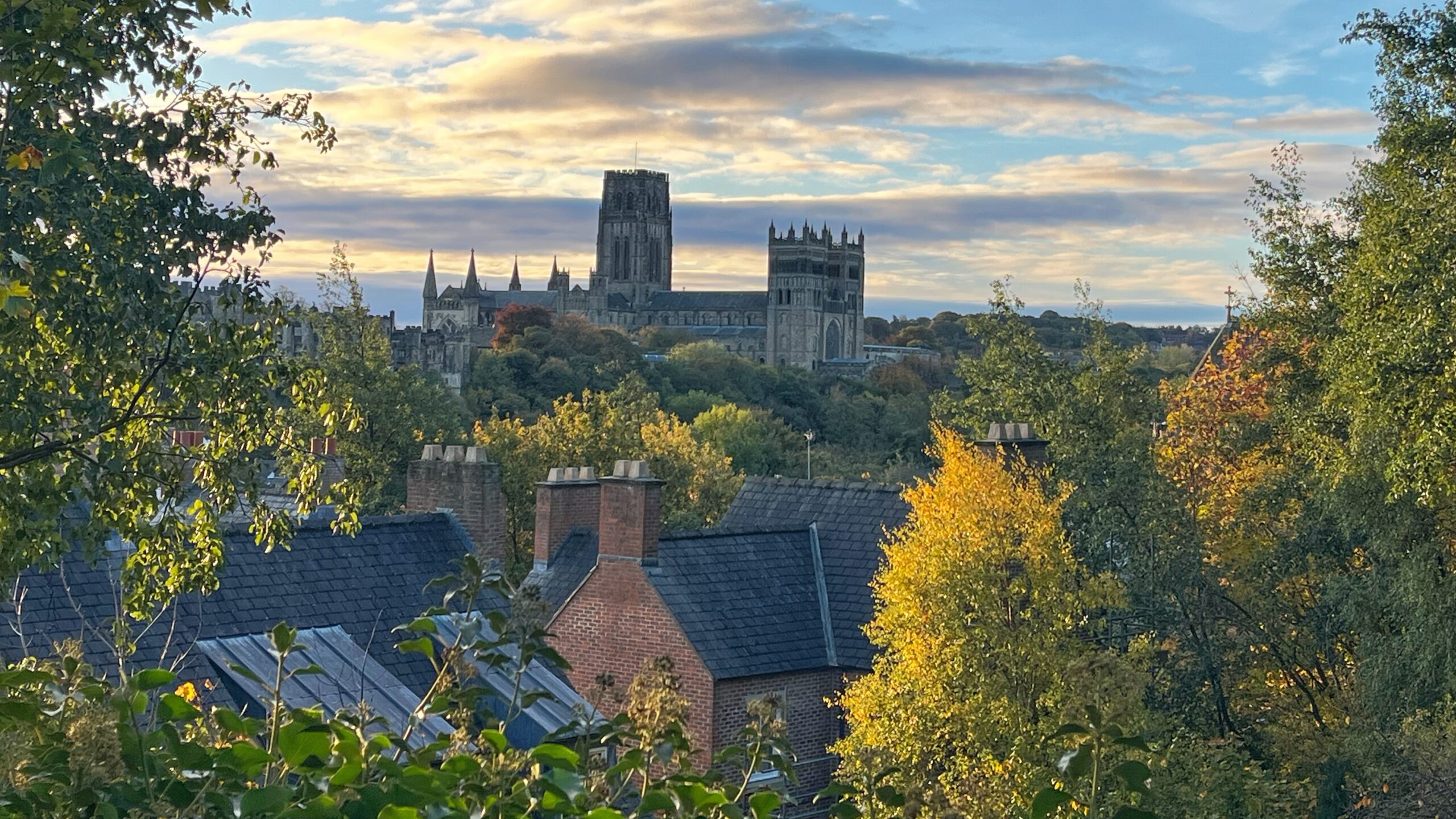 Nach einem Tag Anreise mit der Bahn (trotz Sturmtief über Europa hatten alle Umstiege geklappt) von Nürnberg nach Durham stand ich am nächsten Morgen auf, ging in der Morgensonne ein Stück am River Wear entlang und dann hinauf in die Kathedrale. Samstags um halb neun war es dort noch ganz still und leer, nur hinter dem Hochaltar hatte sich eine kleine Gruppe zum Morgengebet am Grab von St. Cuthbert eingefunden. Einen schöneren Einstieg ins Pilgern hätte ich mir kaum vorstellen können.