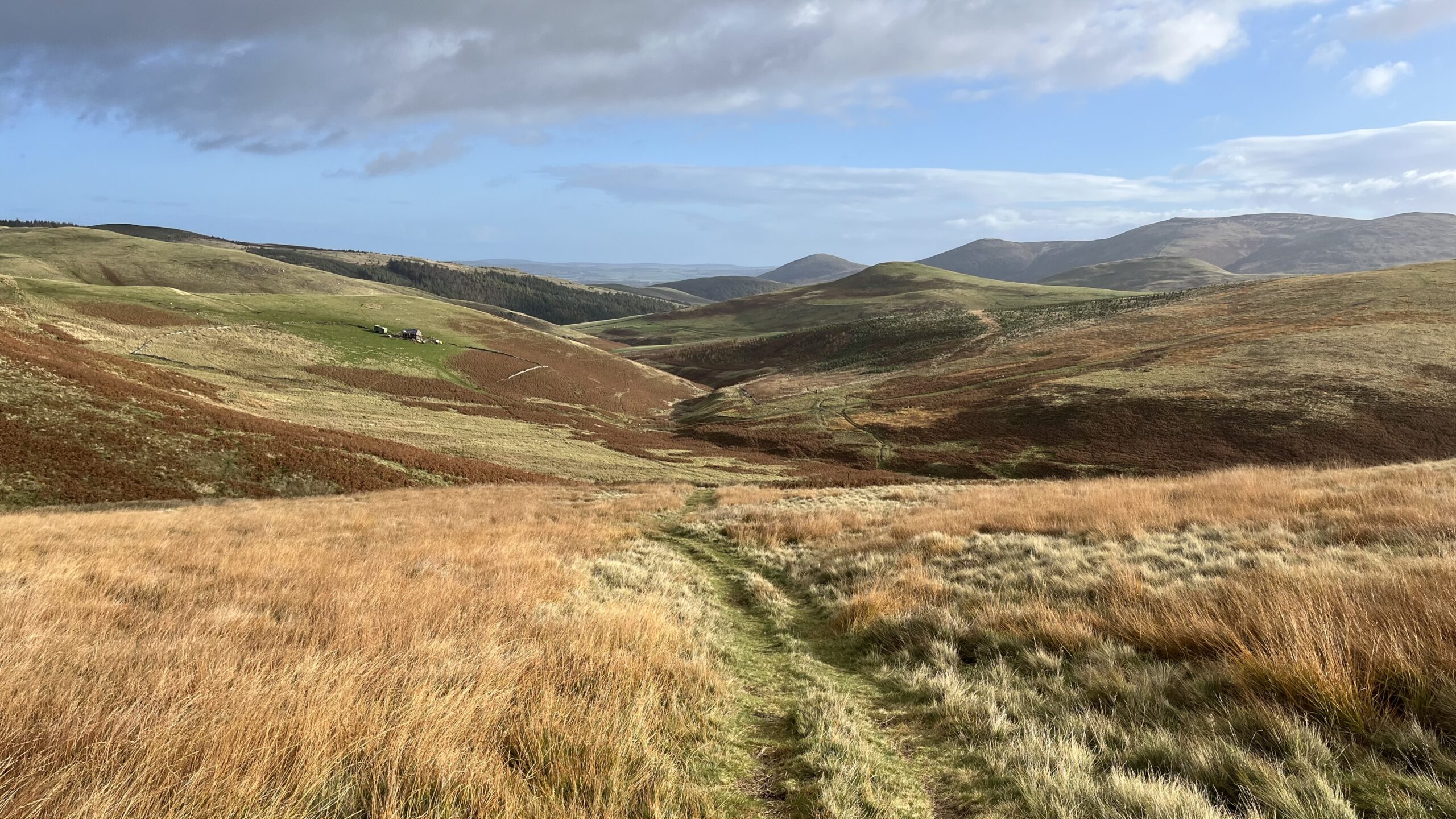 Ab dem dritten Tag wurde das Etappenziel auch aus einem weiteren Grund immer wichtiger: Ich stellte fest, dass meine Beine 25 km am Tag locker wegsteckten und dass mein mit viel Bedacht gepackter Rucksack gut zu tragen war. Was ich nicht erwartet hatte, waren die wunden Füße. Meine alten, eingelaufenen Wanderstiefel entpuppten sich als zu eng. Über Nacht erholten sich die Füße immer ein bisschen, die erste Hälfte des Tages ging einigermaßen, aber dann schmerzte jeder Schritt – bergab immer noch etwas mehr als bergauf. Die Landschaft war immer noch wunderschön, aber der Genuss war getrübt und die Gedanken wollten auch zu keinen größeren Höhenflügen mehr ansetzen. Außer der nicht ganz unwichtigen Einsicht, dass ich es für völlig selbstverständlich gehalten hatte, dass mich meine Füße den ganzen Weg tragen. Aber das war es nicht, ich hatte sie zu sehr strapaziert. Am vierten Tag bog ich für das letzte Drittel vom Weg durch die Cheviot Hills ab und nahm den Bus nach Wooler. Es fühlte sich ein bisschen nach Niederlage an. Aber ich wusste: Es war richtig, Rücksicht zu nehmen und die Grenze zu respektieren, die der Schmerz markierte.
